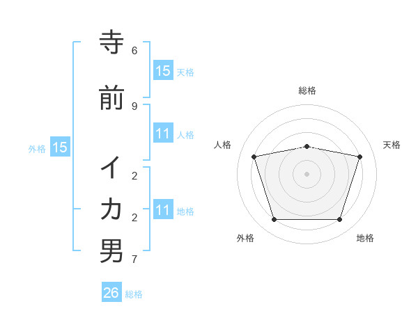 寺前 イカ男さんを姓名の画数から五運を鑑定