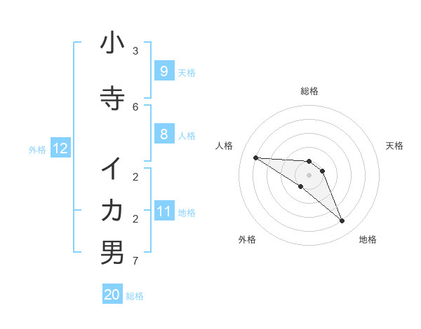 小寺 イカ男さんの総格は20画の1点!