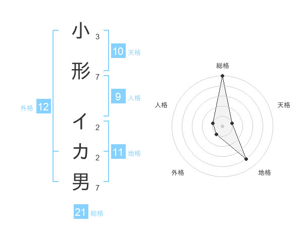 小形 イカ男さんを姓名の画数から五運を鑑定