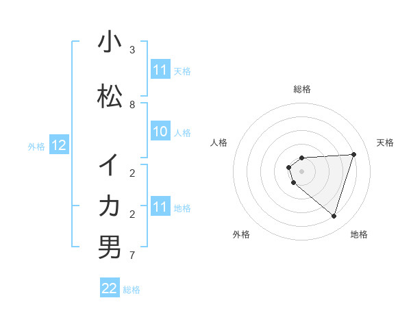 小松 イカ男さんの地格は11画の4点!