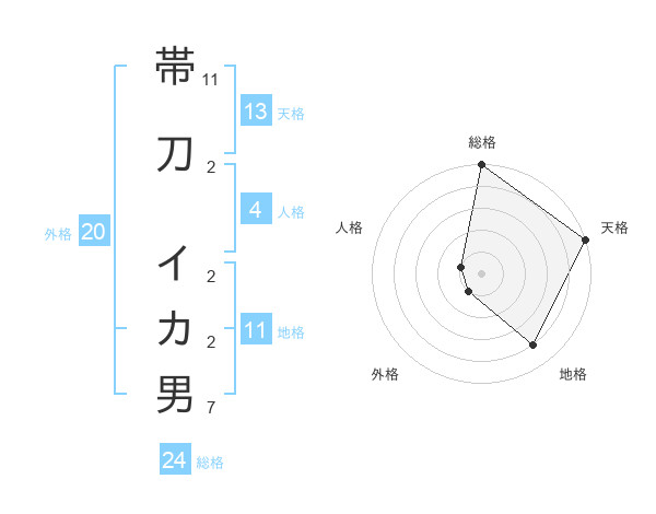 帯刀 イカ男さんの天格は13画の5点!