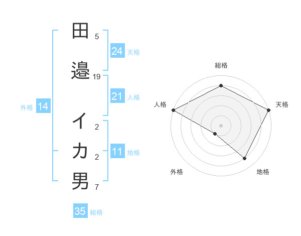 田邉 イカ男さんを姓名の画数から五運を鑑定