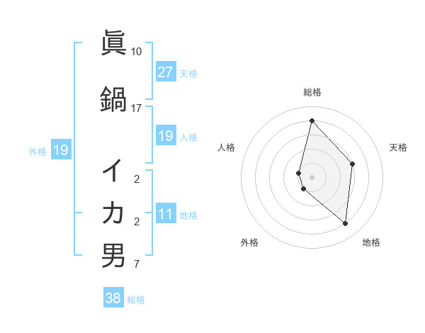 眞鍋 イカ男さんを姓名の画数から五運を鑑定