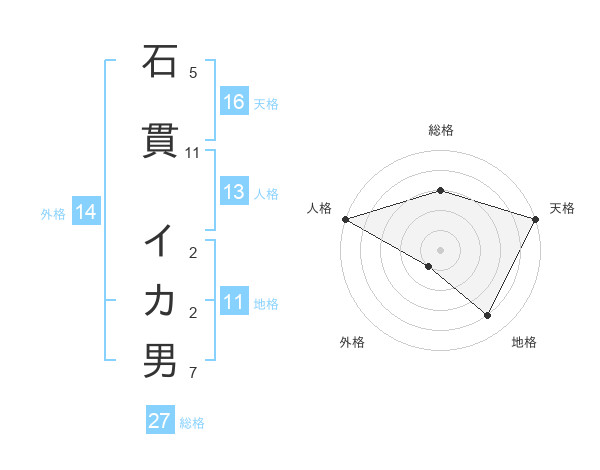 石貫 イカ男さんの天格は16画の5点!