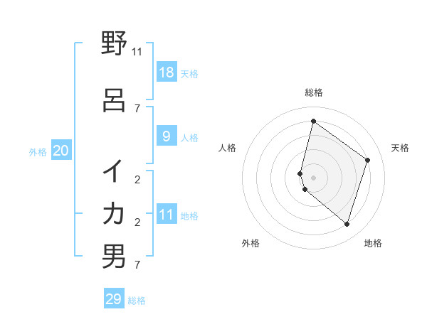 野呂 イカ男さんを姓名の画数から五運を鑑定