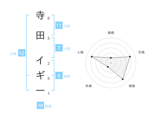 寺田 イギーさんを姓名の画数から五運を鑑定