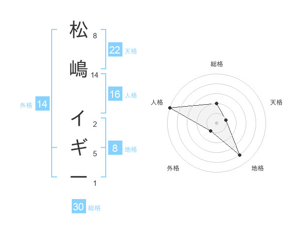 松嶋 イギーさんを姓名の画数から五運を鑑定