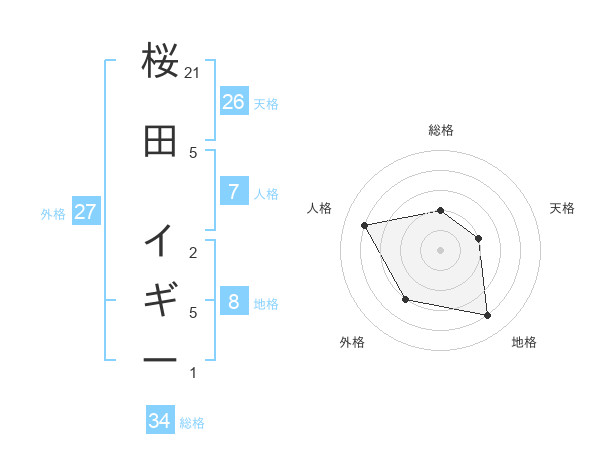 桜田 イギーさんを姓名の画数から五運を鑑定