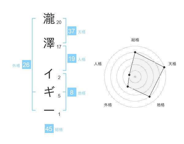 瀧澤 イギーさんを姓名の画数から五運を鑑定