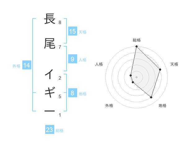長尾 イギーさんを姓名の画数から五運を鑑定