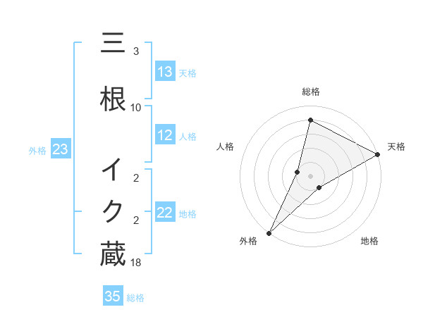 三根 イク蔵さんを姓名の画数から五運を鑑定