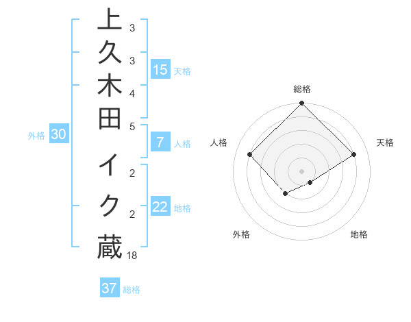 上久木田 イク蔵さんを姓名の画数から五運を鑑定