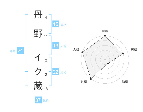 丹野 イク蔵さんの総格は37画の5点!
