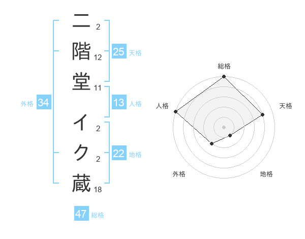 二階堂 イク蔵さんの総格は47画の5点!