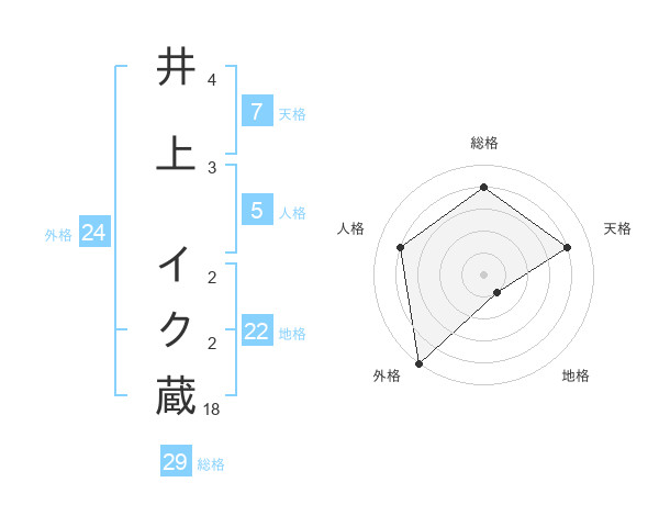 井上 イク蔵さんの総格は29画の4点!