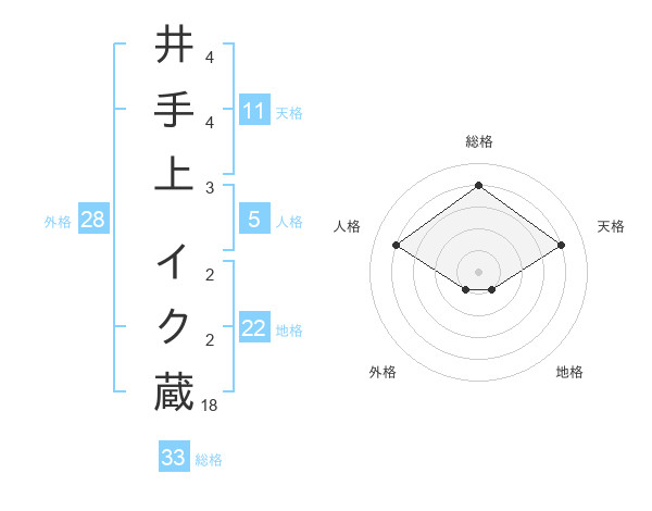 井手上 イク蔵さんを姓名の画数から五運を鑑定