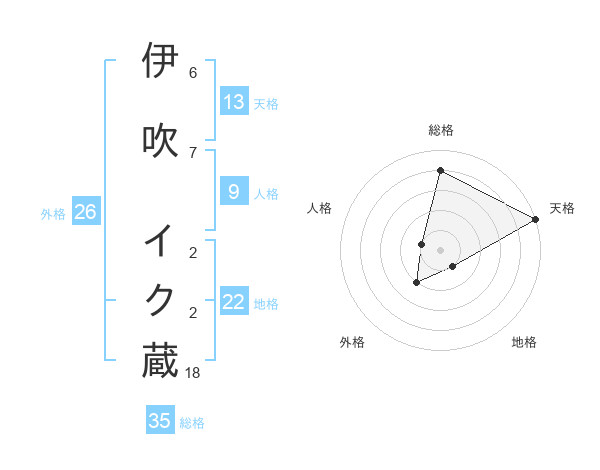 伊吹 イク蔵さんを姓名の画数から五運を鑑定