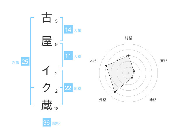 古屋 イク蔵さんの地格は22画の1点!