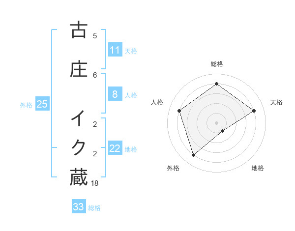 古庄 イク蔵さんの総格は33画の4点!