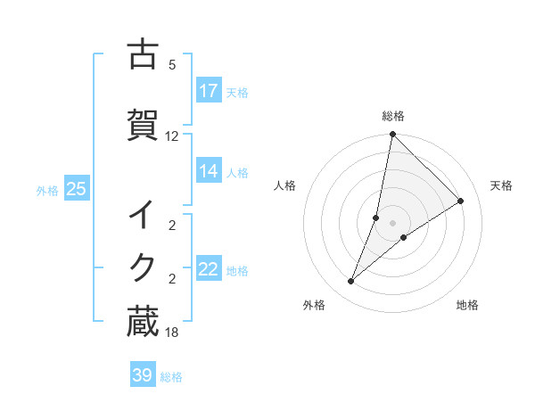 古賀 イク蔵さんの総格は39画の5点!