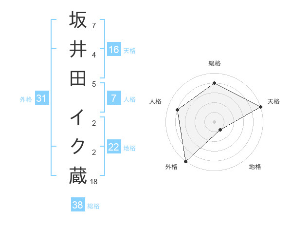 坂井田 イク蔵さんを姓名の画数から五運を鑑定