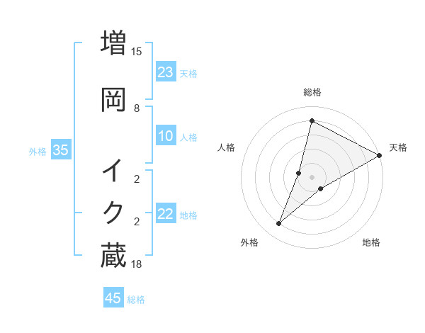 増岡 イク蔵さんの総格は45画の4点!