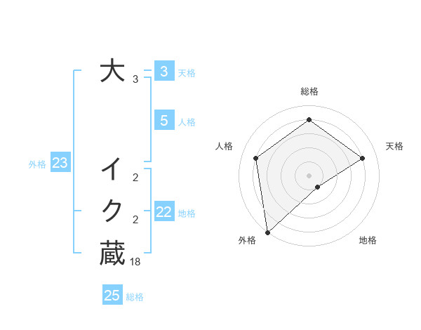 大 イク蔵さんの総格は25画の4点!