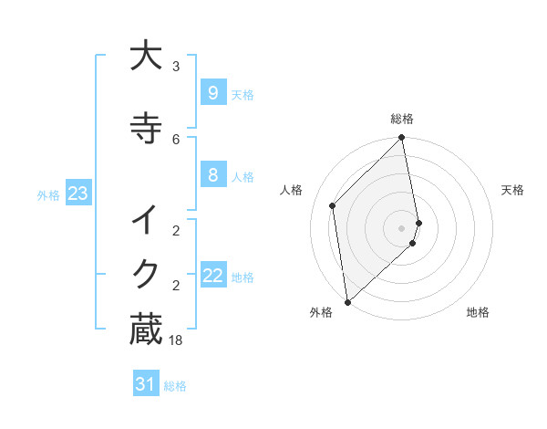 大寺 イク蔵さんの総格は31画の5点!
