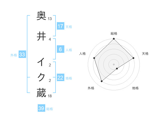 奥井 イク蔵さんの総格は39画の5点!