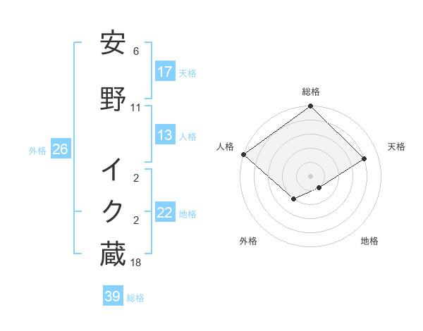 安野 イク蔵さんの総格は39画の5点!