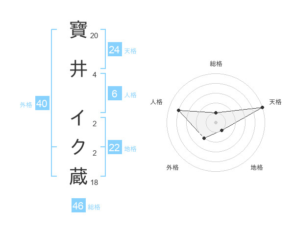寶井 イク蔵さんを姓名の画数から五運を鑑定