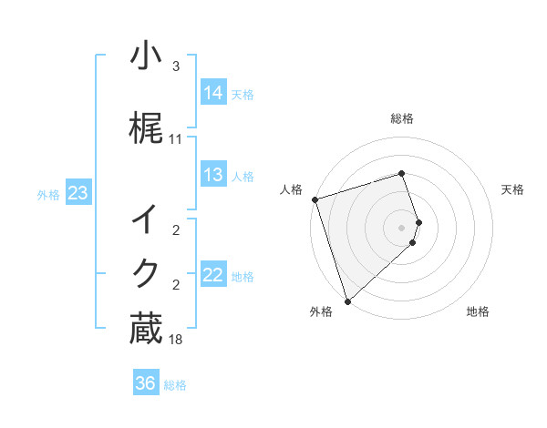 小梶 イク蔵さんを姓名の画数から五運を鑑定