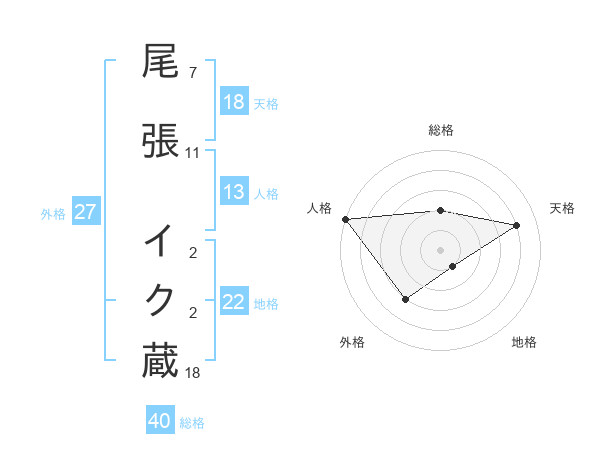 尾張 イク蔵さんを姓名の画数から五運を鑑定