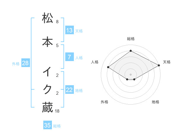 松本 イク蔵さんの天格は13画の5点!