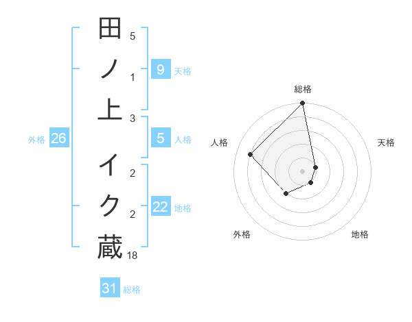 田ノ上 イク蔵さんを姓名の画数から五運を鑑定
