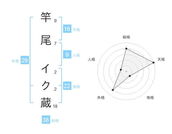 竿尾 イク蔵さんの総格は38画の4点!