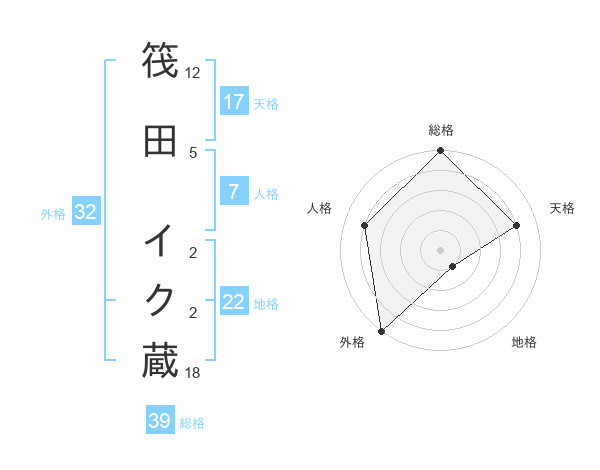 筏田 イク蔵さんを姓名の画数から五運を鑑定