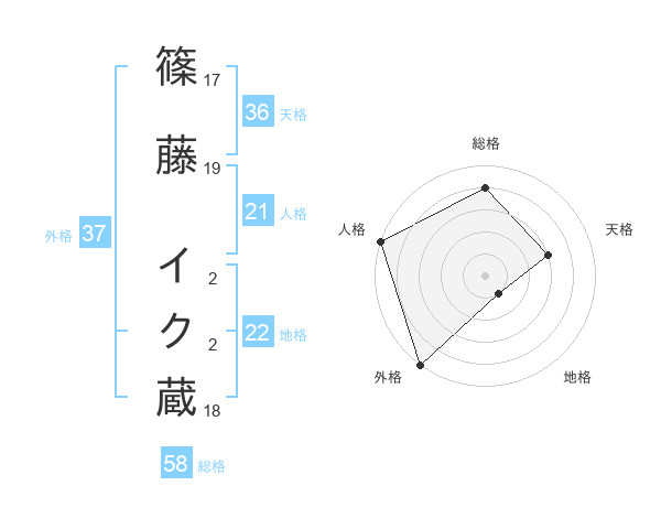 篠藤 イク蔵さんの総格は58画の4点!