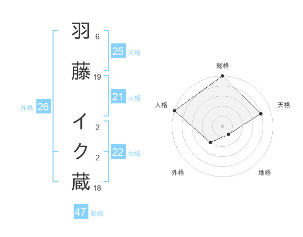 羽藤 イク蔵さんを姓名の画数から五運を鑑定