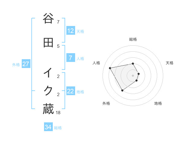 谷田 イク蔵さんの総格は34画の2点!