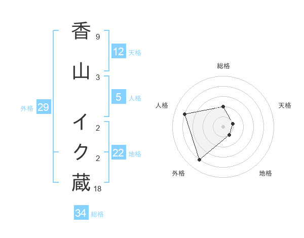 香山 イク蔵さんの総格は34画の2点!