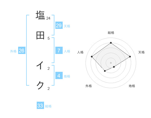 塩田 イクさんの総格は33画の4点!