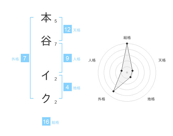 本谷 イクさんの外格は7画の4点!