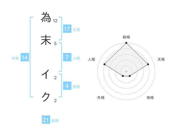 為末 イクさんの総格は21画の5点!