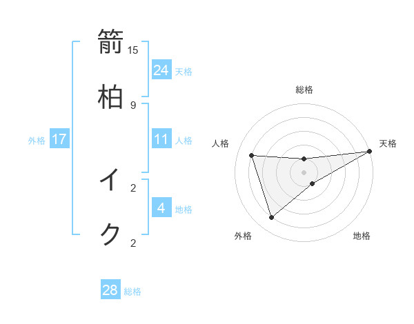 箭柏 イクさんを姓名の画数から五運を鑑定