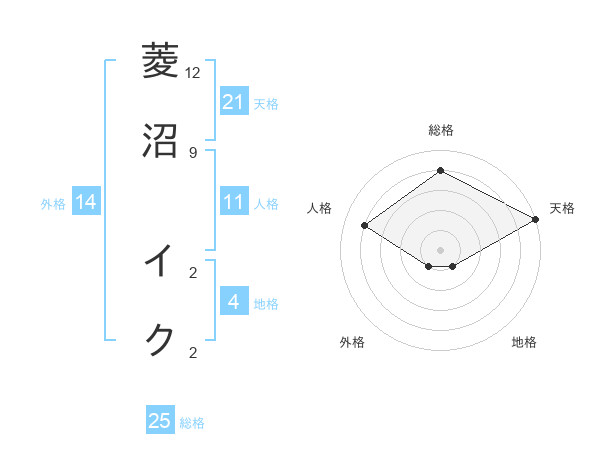 菱沼 イクさんの総格は25画の4点!