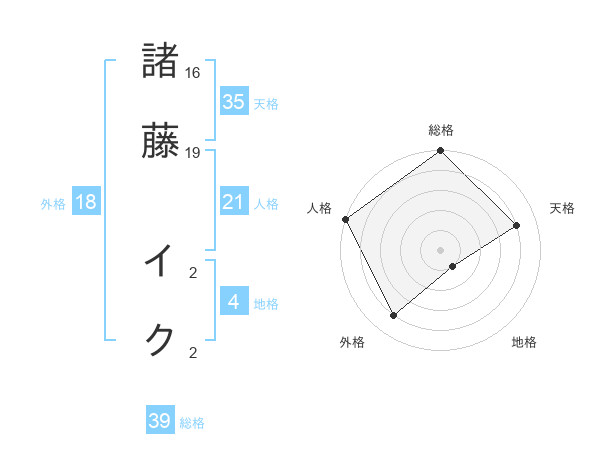 諸藤 イクさんを姓名の画数から五運を鑑定