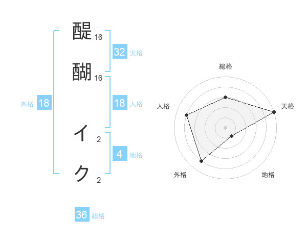 醍醐 イクさんの天格は32画の5点!
