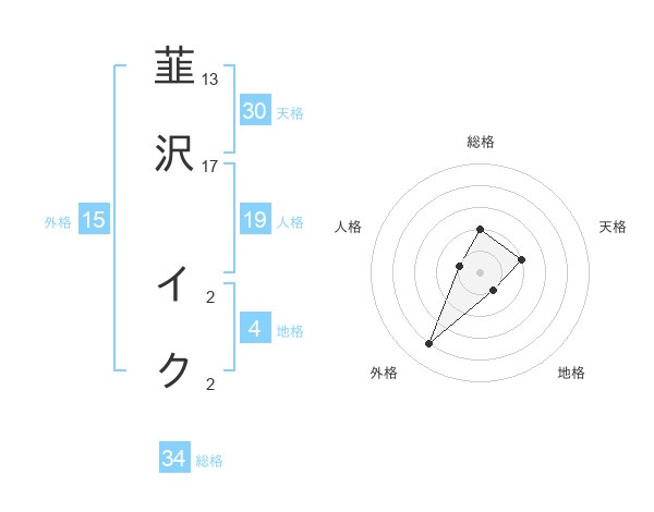 韮沢 イクさんの総格は34画の2点!