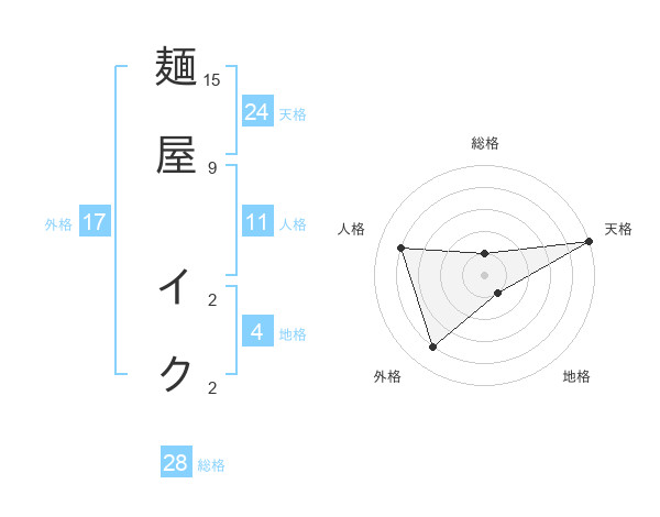 麺屋 イクさんを姓名の画数から五運を鑑定